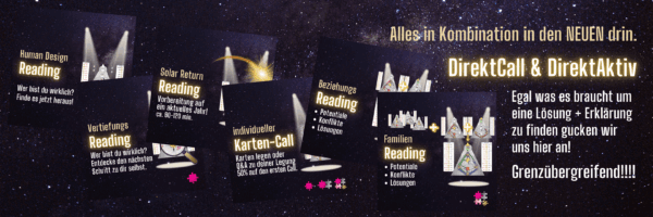 Somit können aus allen Bereichen, die ich früher als StandardReadings angeboten habe Teile jetzt in meine Arbeit mit dir einfließen und das im Hier und Jetzt!